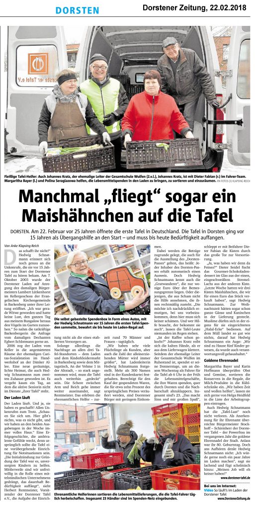 15 Jahre Dorstener Tafel 22. Februar 201828. Februar 2018 jotw Mehr zur Geschichte der Dorstener Tafel