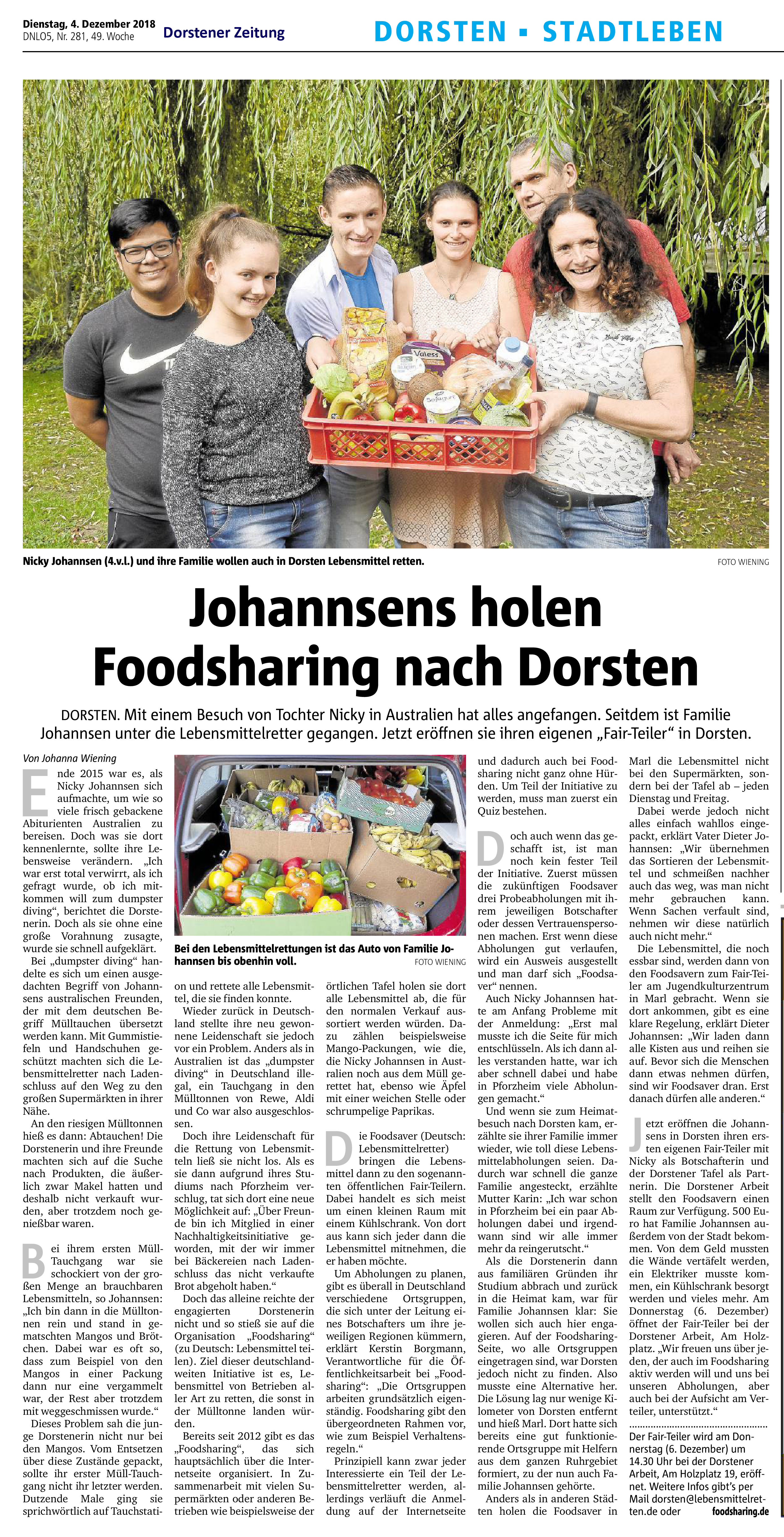 Nachfolgend der leider etwas missverständliche Bericht der Dorstener Zeitung: Nein, die TAFEL gibt keine Lebensmittel an die Fair-Teiler, die sie auch noch ihren Kunden geben dürfte!
