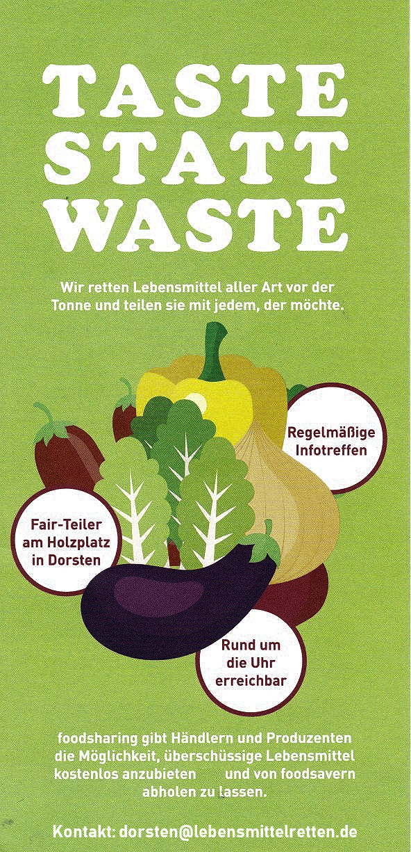 Die DORSTENER TAFEL, zur Unterstützung von Bedürftigen gegründet und in zweiter Linie angetreten, um Lebensmittel vor der Vernichtung zu retten, unterstützt gerne diese Lebensmittelretter, die auch Waren, die bei der TAFEL nicht mehr an die Kund*innen abgegeben werden dürfen, kostenlos für jedefrau&jedermann anbieten.