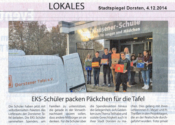 EKS-Schüler packen Päckchen für die Tafel