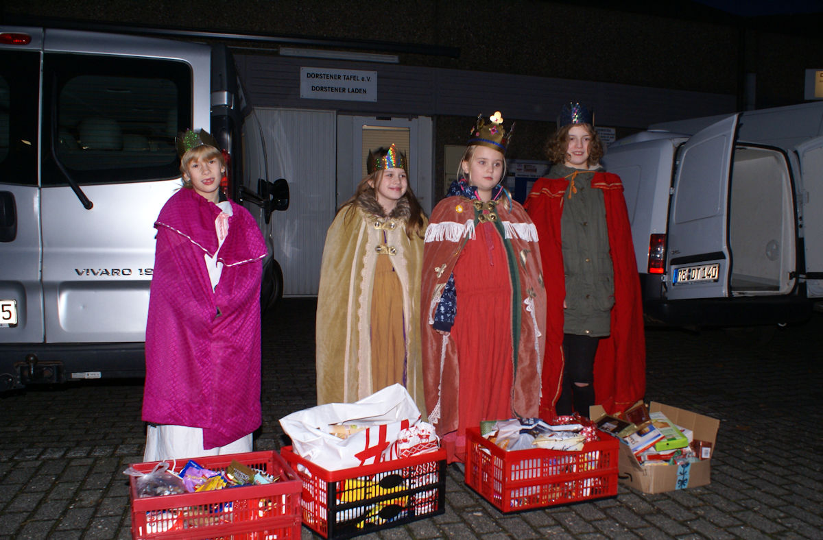 Noch einmal schlüpften manche Sternsinger in ihr königliches Gewand, dieses Mal nicht, um für behinderte, benachteiligte Kinder in aller Welt zu sammeln, sondern um den Dorstener Kindern eine Freude zu machen, deren Eltern Kunden bei der TAFEL sind.