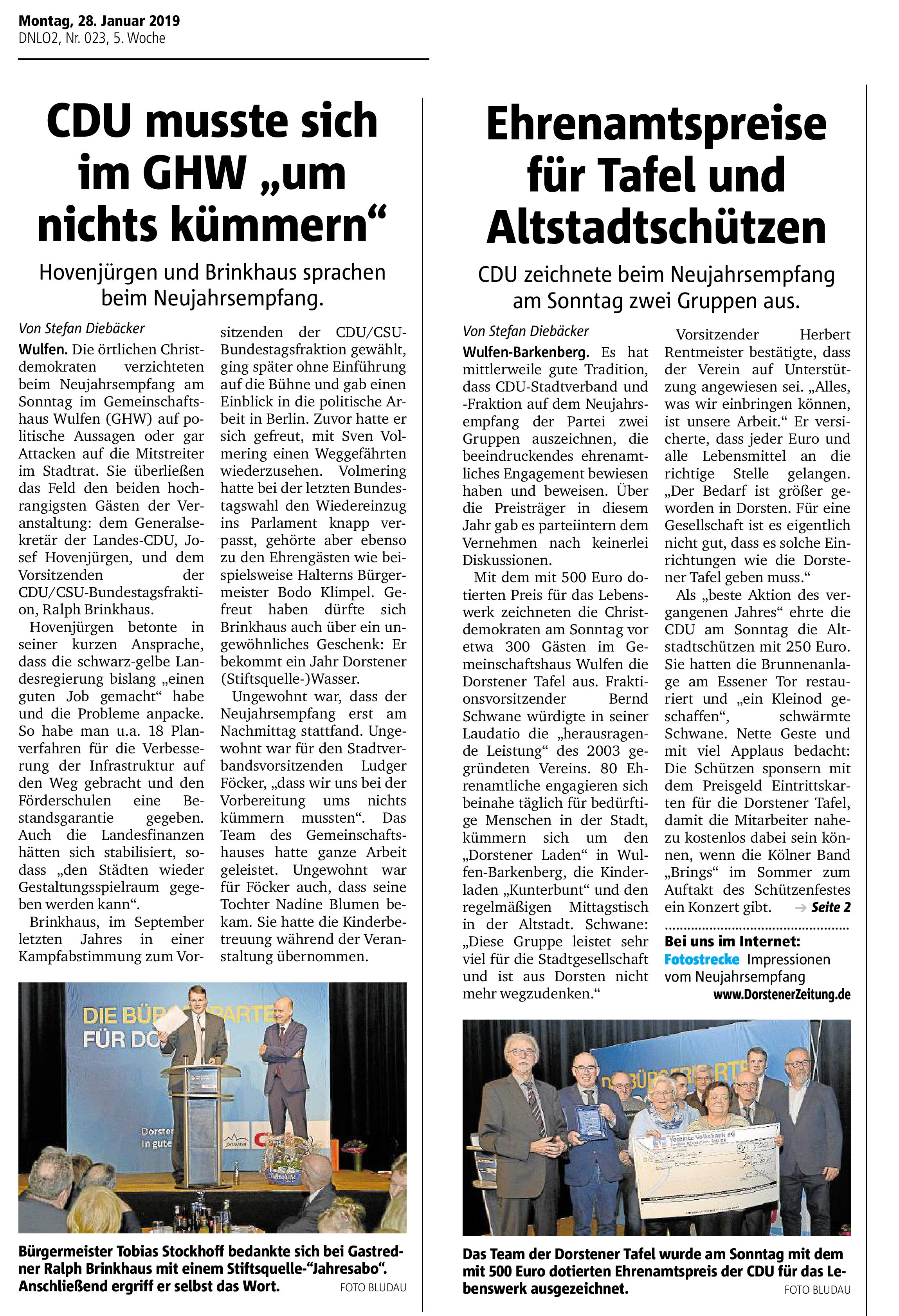 Ehrenamtspreis für das ‚Lebenswerk‘ beim CDU-Neujahrsempfang