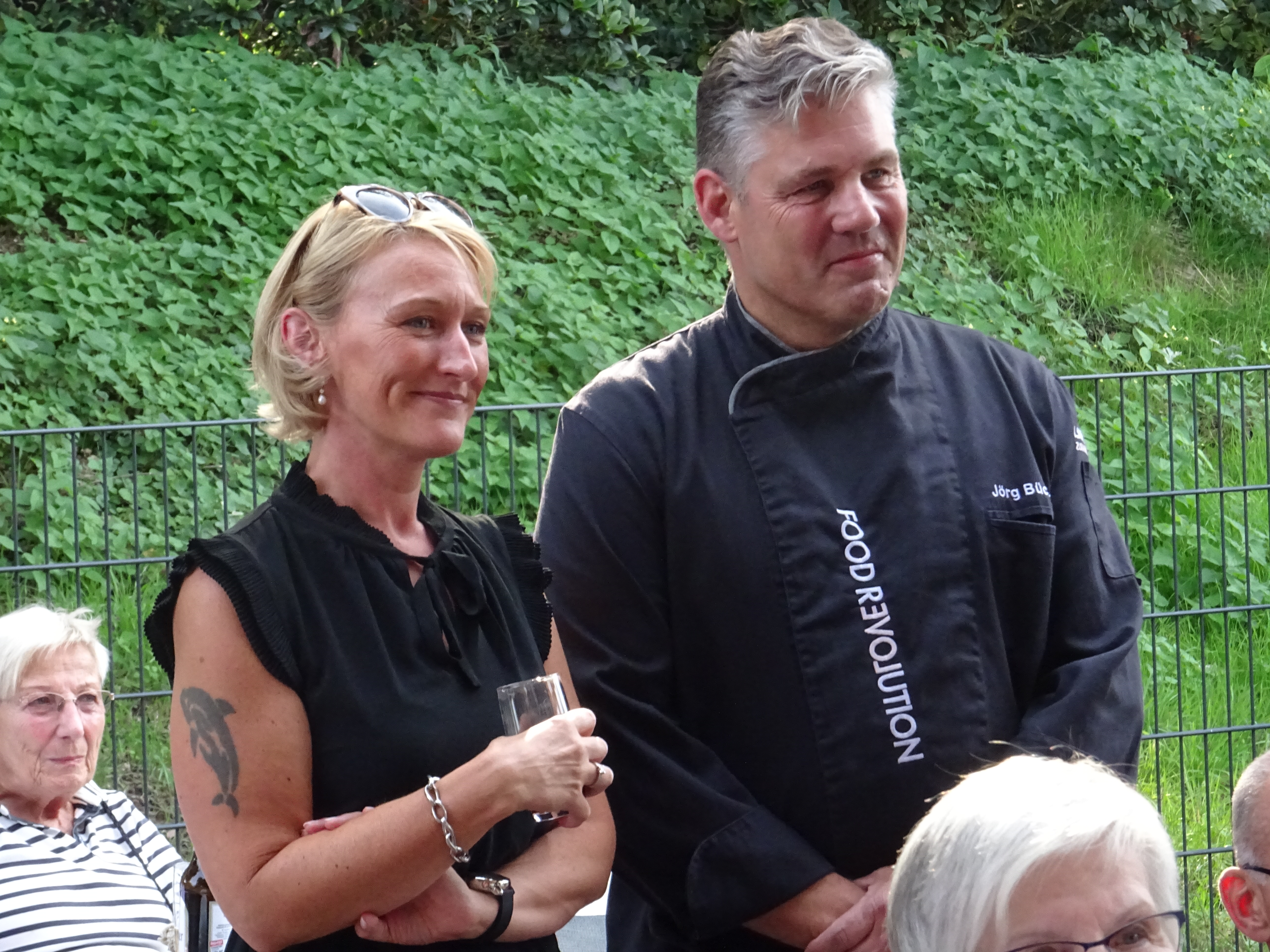 Weitere Unterstützung erhielten die beiden Bürgermeister vom Meisterkoch Jörg Bücker, der, assistiert von seiner charmanten Frau Jessica Trox (amtierende Schützenkönigin der Altstadt), mit seinem Können dafür sorgte, dass Würstchen und Steaks ‚gut durch‘ serviert werden konnten.