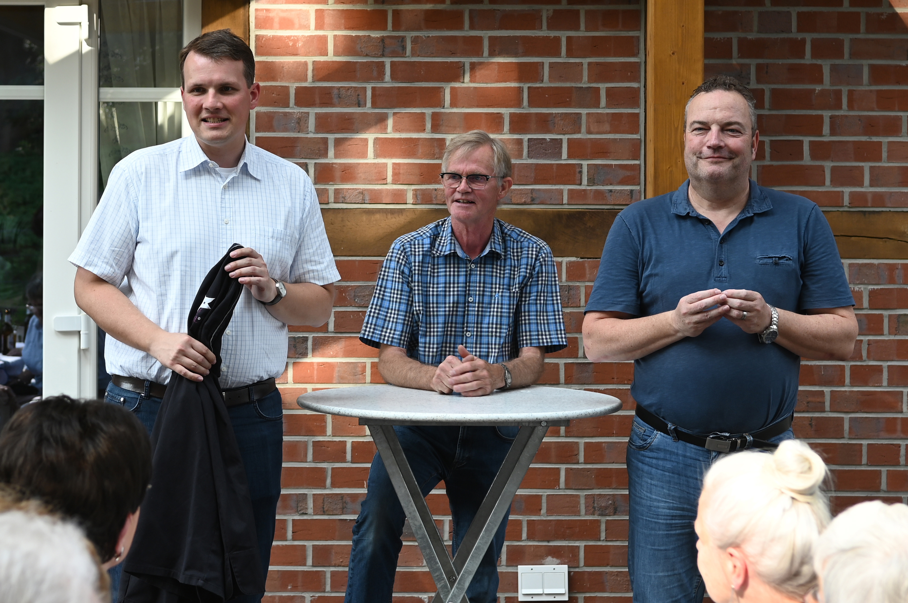 Foto: Bludau – 23.08.2019 – v.l. Tobias Stockhoff, Johannes Krümpel, Bodo KlimpelAm Freitagabend war für die DORSTENER und die HALTERNER TAFEL mal einmal die Tafel gedeckt: die beiden Bürgermeister Bodo Klimpel und Tobias Stockhoff lösten ihr spontanes Versprechen vom Neujahrsempfang der Dorstener CDU ein und erfreuten die Ehrenamtlichen der beiden Tafeln mit kross Gegrilltem und erfrischend Kühlem. „Die Ehrenamtlichen leisten einen tollen Dienst für unsere jeweiligen Stadtgesellschaften. Dafür wollen wir mit dieser Geste ein herzliches Dankeschön sagen“, erklärten die beiden Ratschefs bei der Begrüßung der gut 60 Gäste.