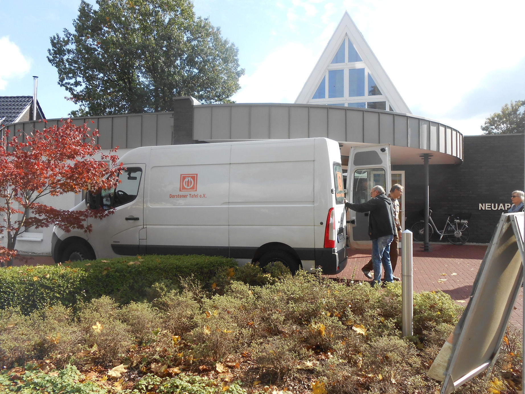 Die Gemeinde der Neuapostolischen Kirche an der Zeppelinstraße hat zum Erntedankfest Lebensmittel für die Dorstener Tafel gesammelt, die nach dem Gottesdienst am Sonntag übergeben wurden. Die TAFEL bedankt sich herzlich für diese Großzügigkeit! Zum Transport brauchten wir unseren großen Wagen.