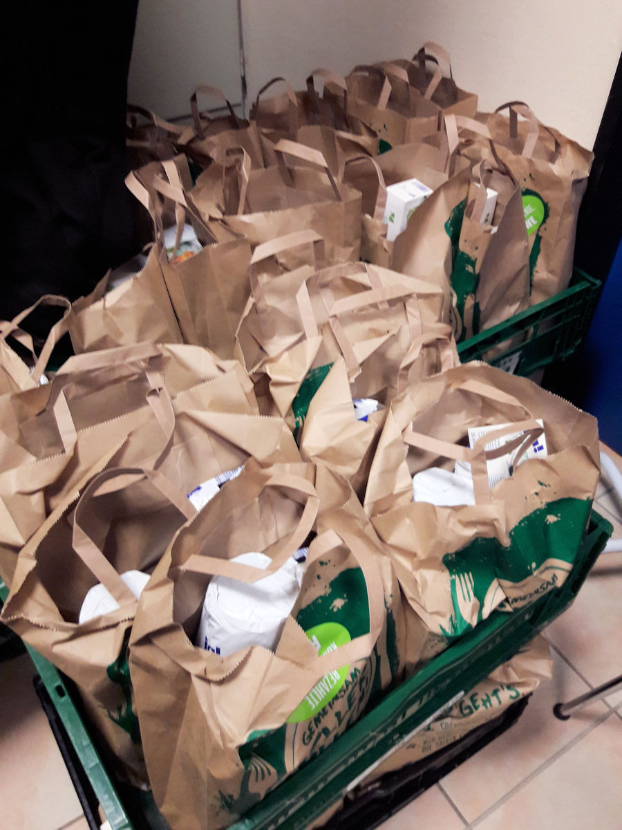 Die Tüten sind gefüllt mit besonders lange haltbaren Lebensmitteln, die sonst eher nicht bei uns abgegeben werden und so das Angebot im Laden gut ergänzen.