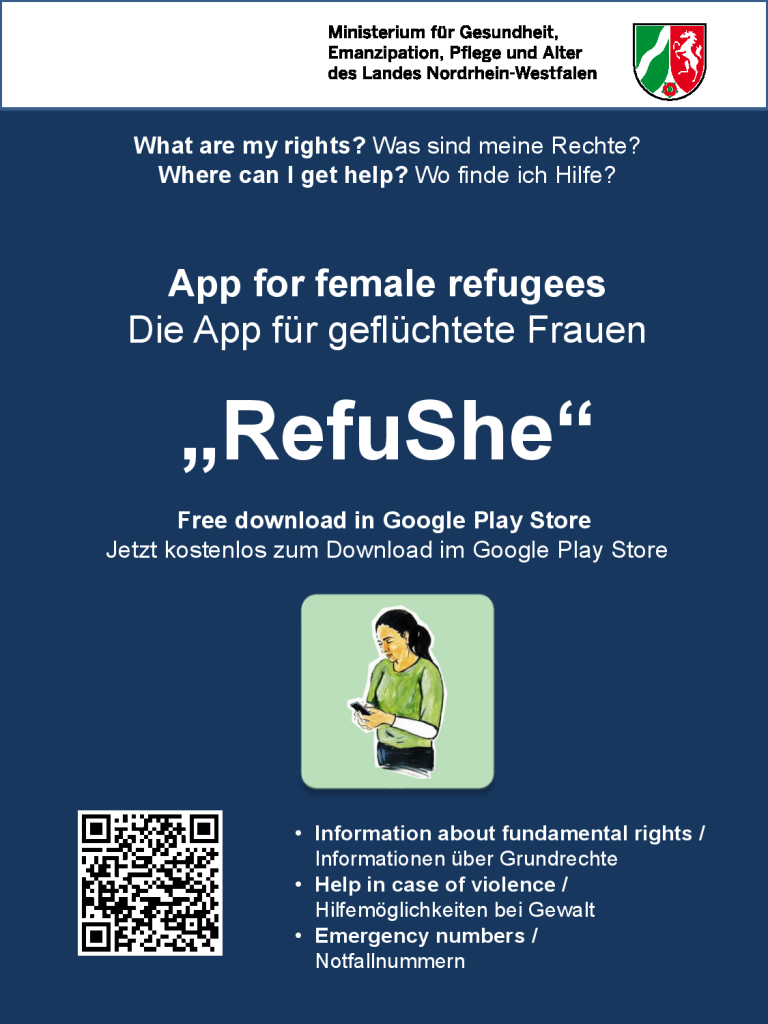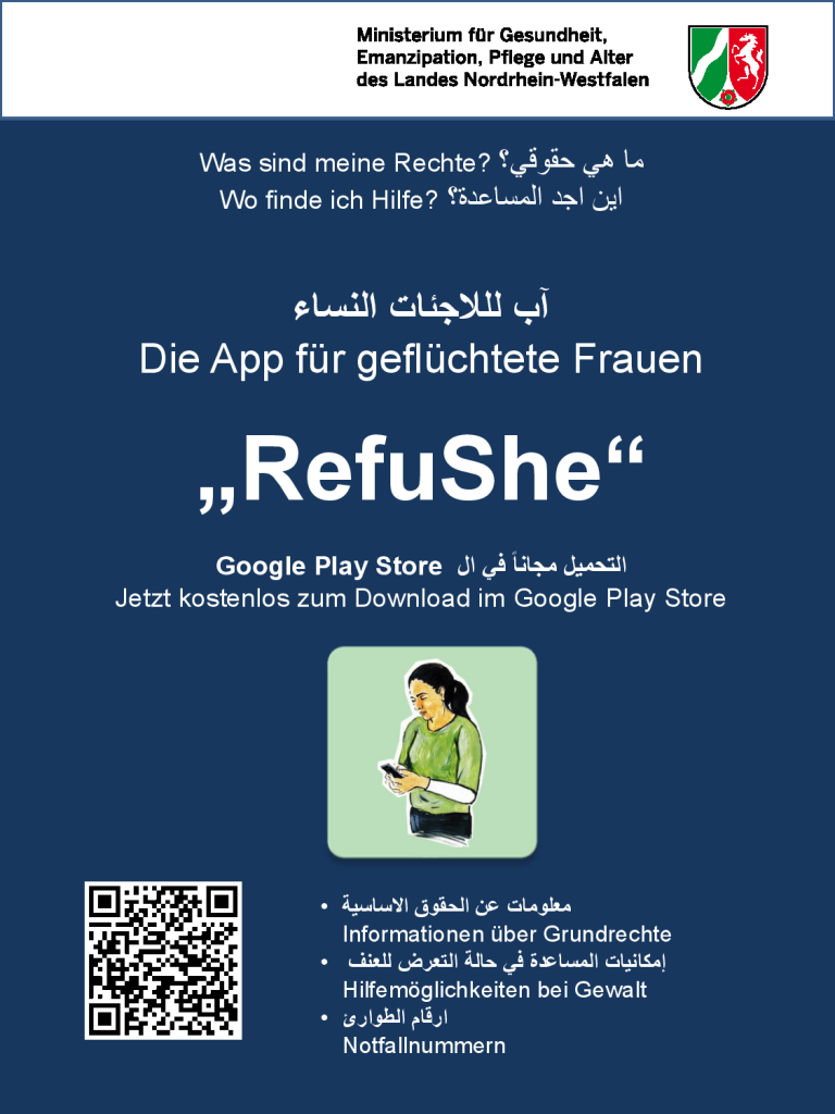 RefuShe wurde im Auftrag des Landes Nordrhein-Westfalen für geflüchtete Frauen entwickelt.